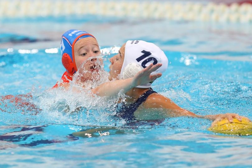 A mérkőzésen Tóth Fruzsina háromszor, Mácsai Kata (képünkön fehér sapkában) egyszer talált be a holland kapuba, míg Mácsai Eszter sérülés miatt nem ugrott vízbe.
