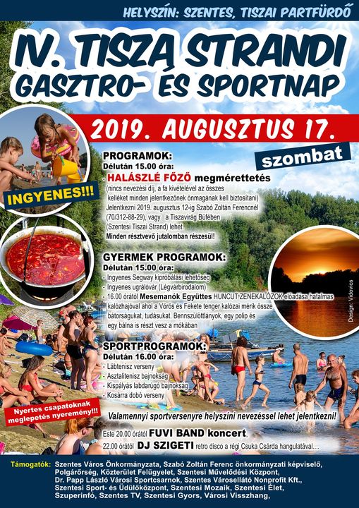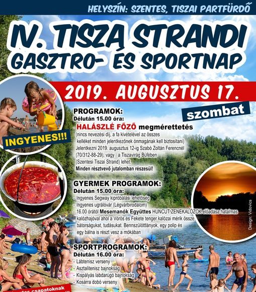 Jelentkezni 2019. augusztus 12-ig Szabó Zoltán Ferencnél (70/312-88-29), vagy a Tiszavirág Büfében (Szentesi Tiszai Strand) lehet