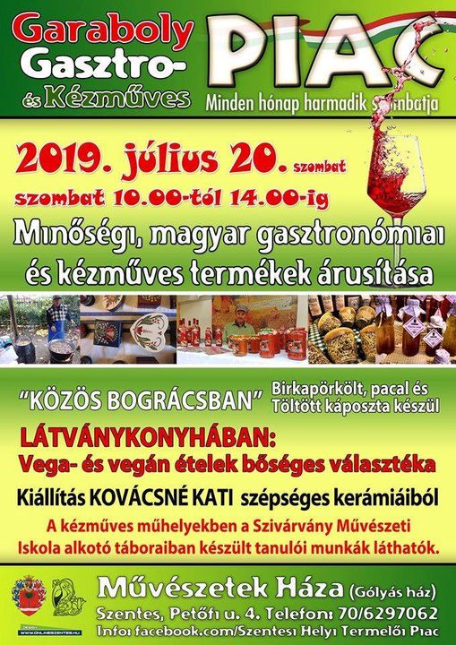 2019. július 20-án újra kinyitja kapuját a kézműves ízek piaca a Művészetek Házában. További infó a plakáton!