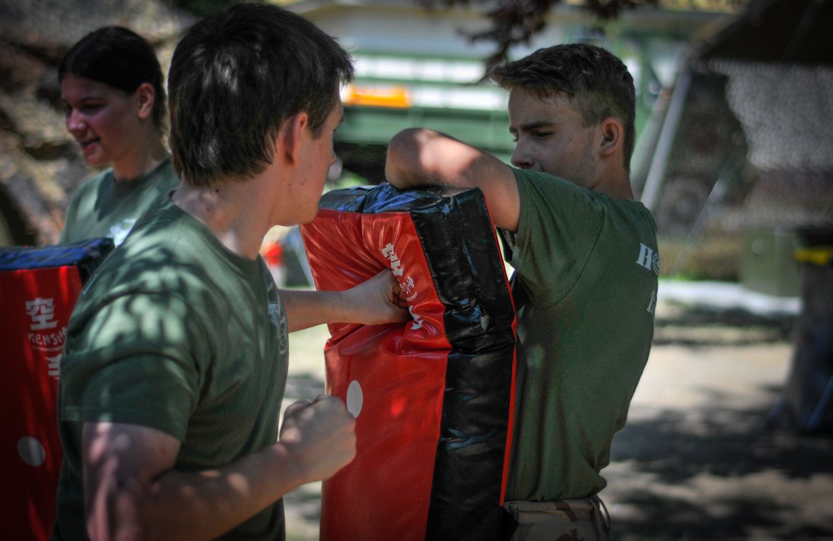 A harmadik napon a táborlakók a szokásos napindító rutin (ébresztő, testnevelés, tisztálkodás és reggeli) után folytatták önvédelmi ismereteik bővítését. A délelőtt folyamán átismételték az állóharc alapjait, majd gyakorolták az ütés és rúgás kombinációkat, valamint a földharcmozdulatokkal és földharctechnikákkal ismerkedtek. Ebéd után az airsoft és a légpuskalövészetet gyakorolták, valamint az egészségügyi ismereteiket (újraélesztés) gazdagították, majd egy intézkedés technikai foglalkozás (eljárásrend és rendészeti eszközök ismertetése) zárta a délutánt. De nem a napot! Ugyanis a takarodó előtt a gyerekek egy 5 km-es menetgyakorlaton vettek részt.