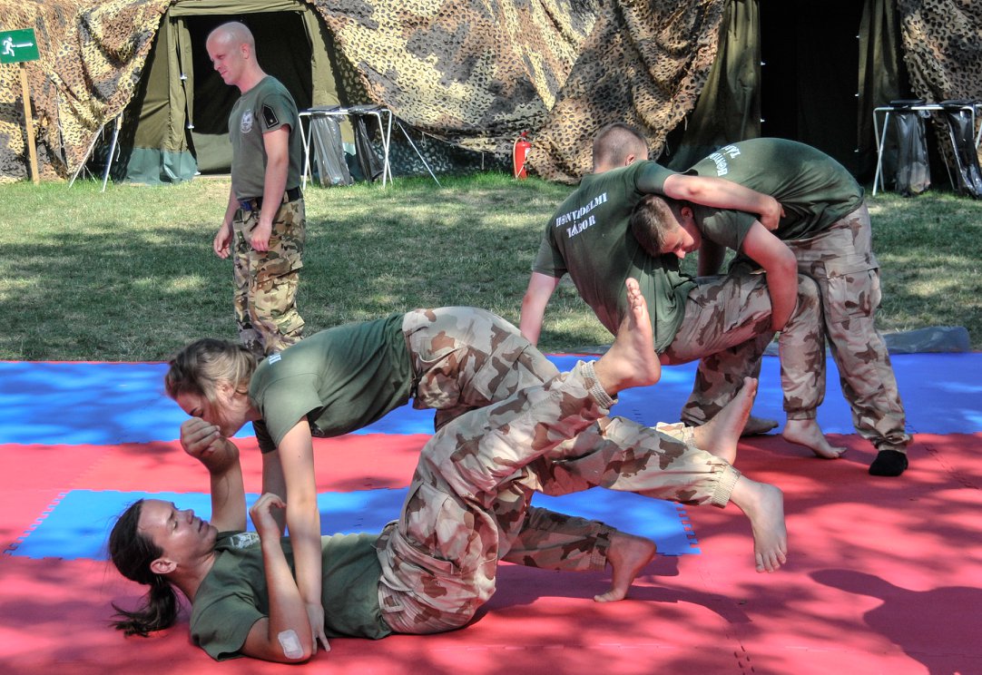 A tábor lakói a délután folyamán forgószínpados foglalkozás keretein belül fejleszthették a vegyesharcművészetben és az airsoft lövészetben megszerzett képességeiket.