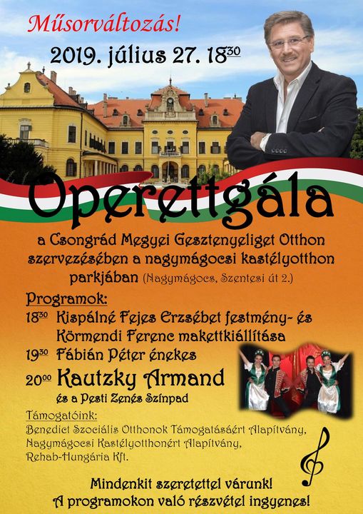 Szeretettel várnak minden érdeklődőt a nagymágocsi Károlyi-kastélyba 2019. július 27-én, szombaton megrendezésre kerülő operettestre. Eredetileg az est sztárfellépője Oszvald Marika lett volna, de sajnos a nemrég történt autóbalesete miatt nem tudja vállalni a fellépést. Bíznak benne, hogy Kautzky Armand kárpótolja majd az operett rajongókat.