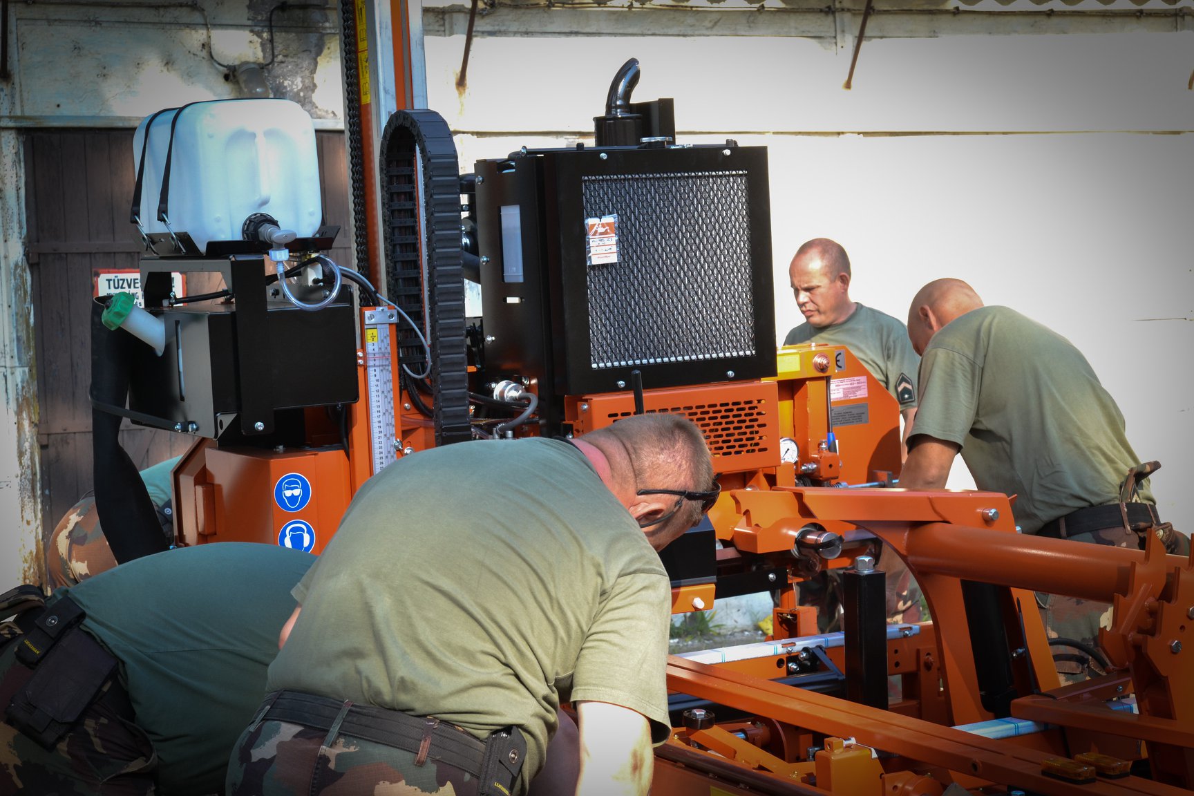 Ez egy mobil (akár terepjáró személygépjárművekkel – úgymint Toyota HILUX – is vontatható), gyors telepíthetőségű, nagy kapacitású szalagfűrész, mellyel az Alacsonyvízi Hídépítő Század munkagép parkja bővült.