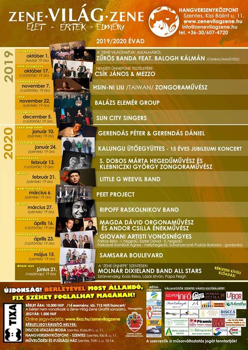 Íme a Zene-Világ-Zene koncertsorozat új évadjának koncertjei Szeptember 1-től …
