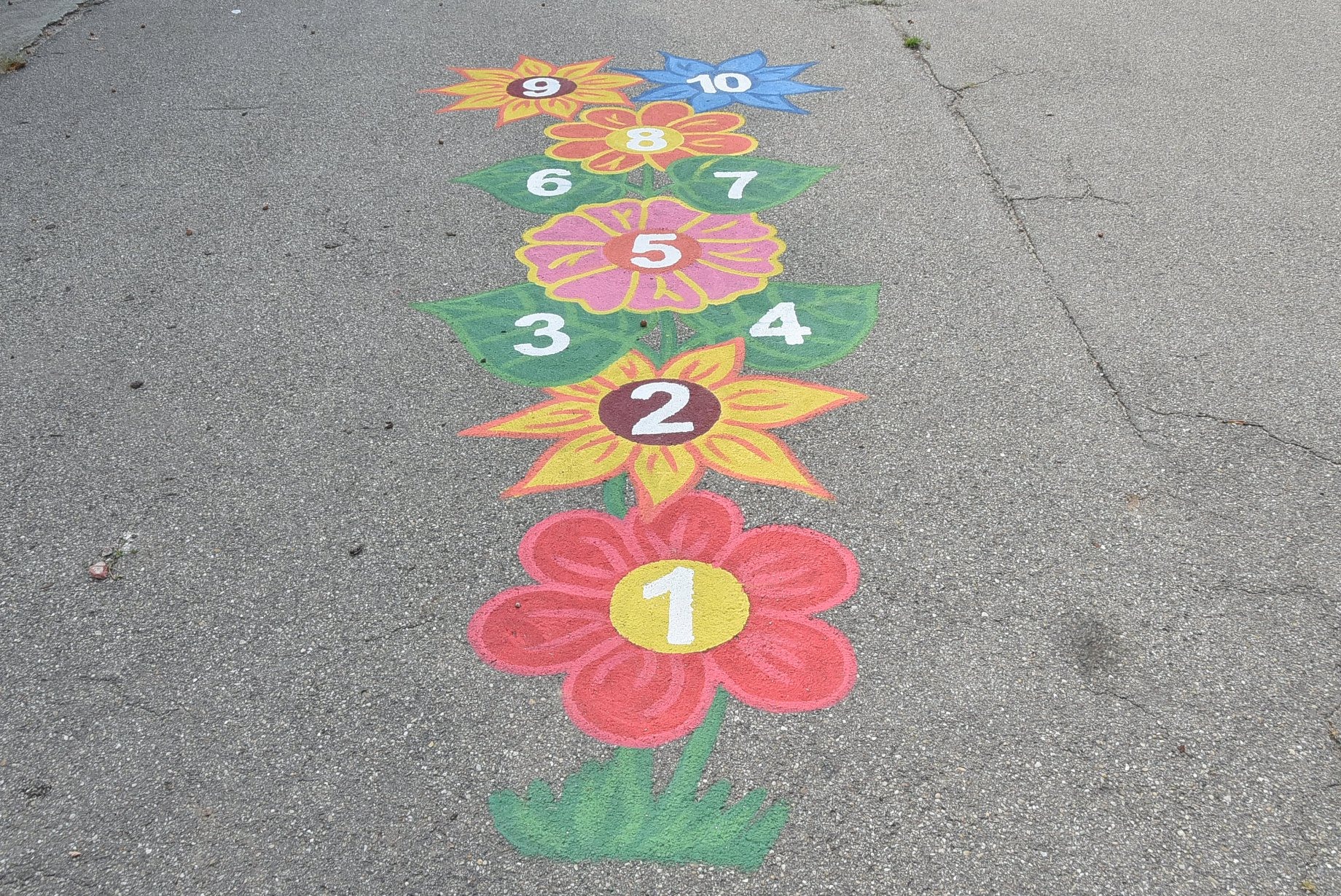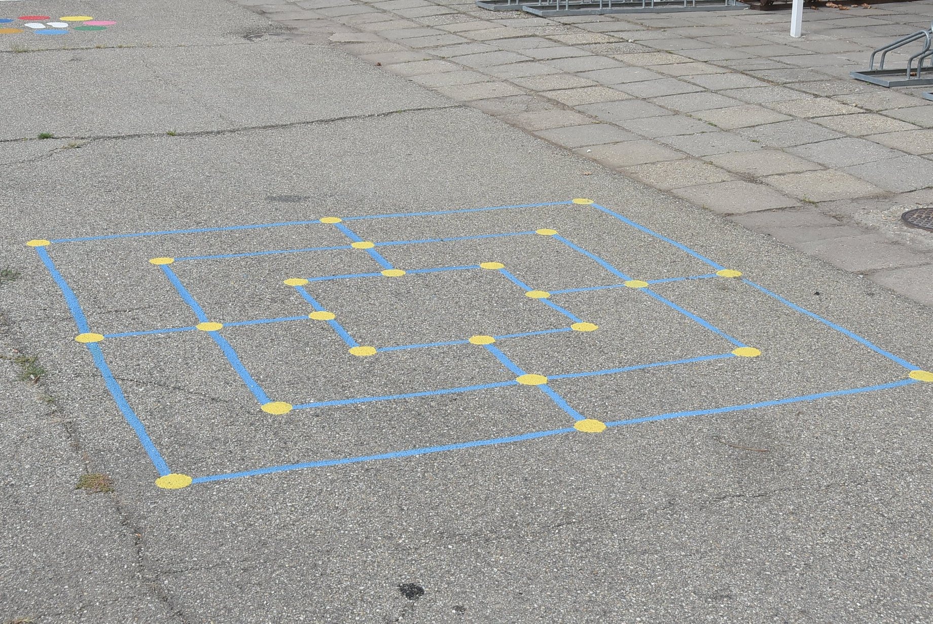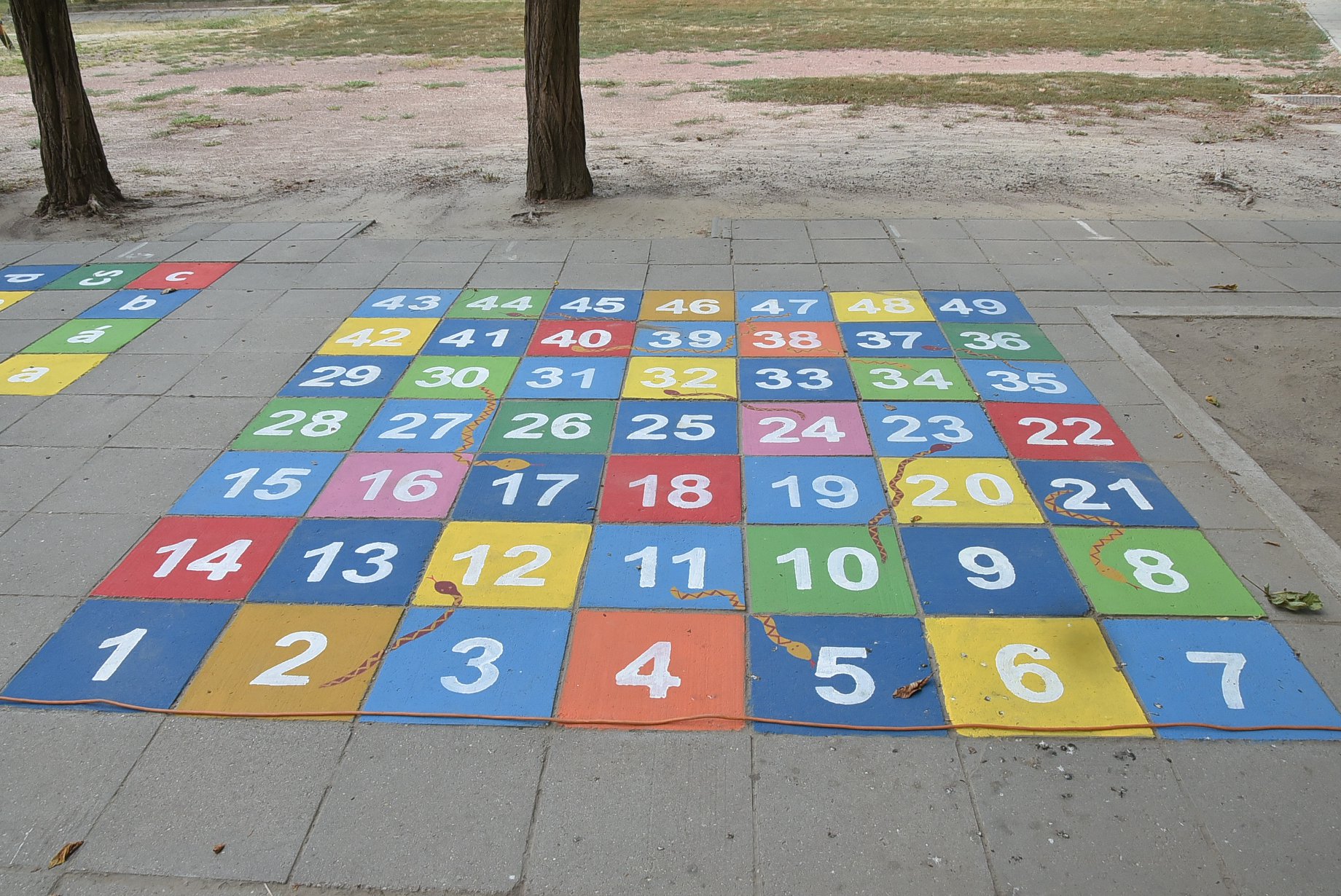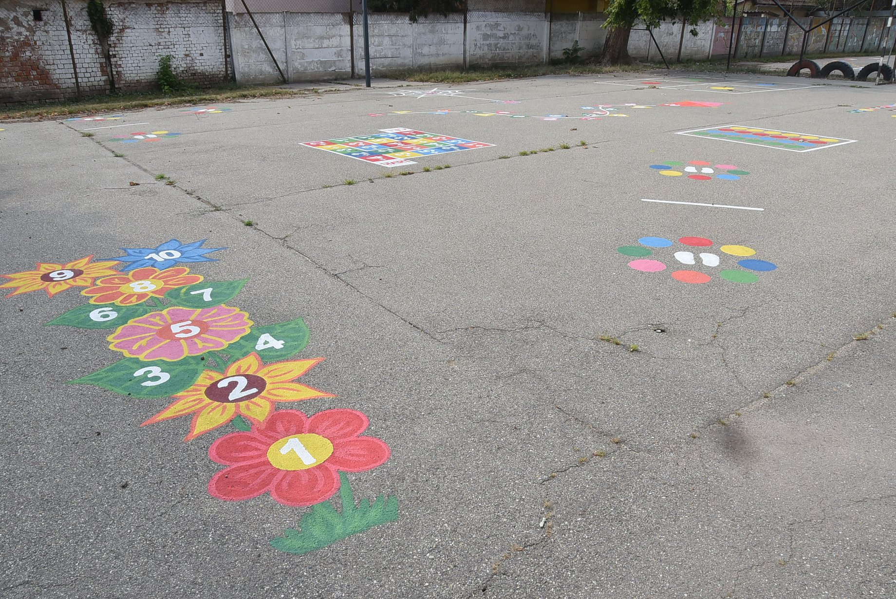 A nyári szünet alatt a Deák Ferenc Általános Iskola udvarára, a sportpályára és a belső udvarra aszfaltra felfestett logikai játékokat, twistert, ugróiskolát, játékos szám- és betűtanulást segítő játékokat festettek fel a pedagógusok.