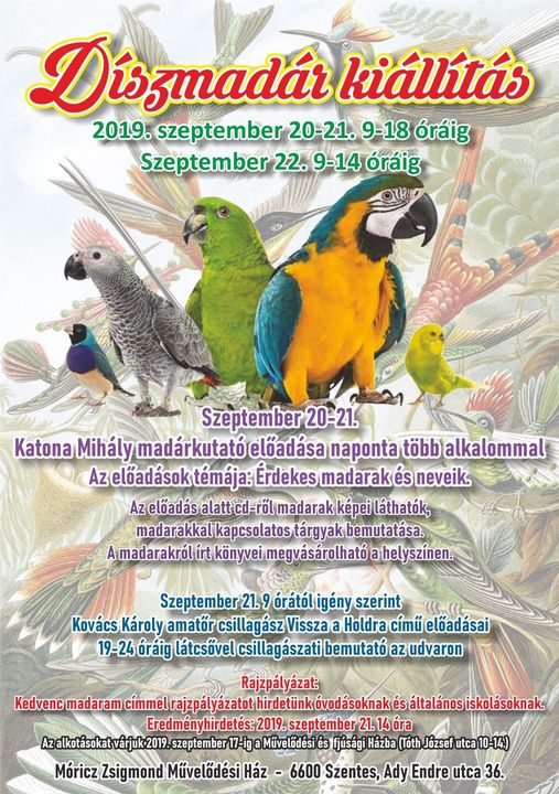 A Szentesi Művelődési Központ idén is megrendezi a már hagyományos szeptemberi családi rendezvényét, a Díszmadár Kiállítást.