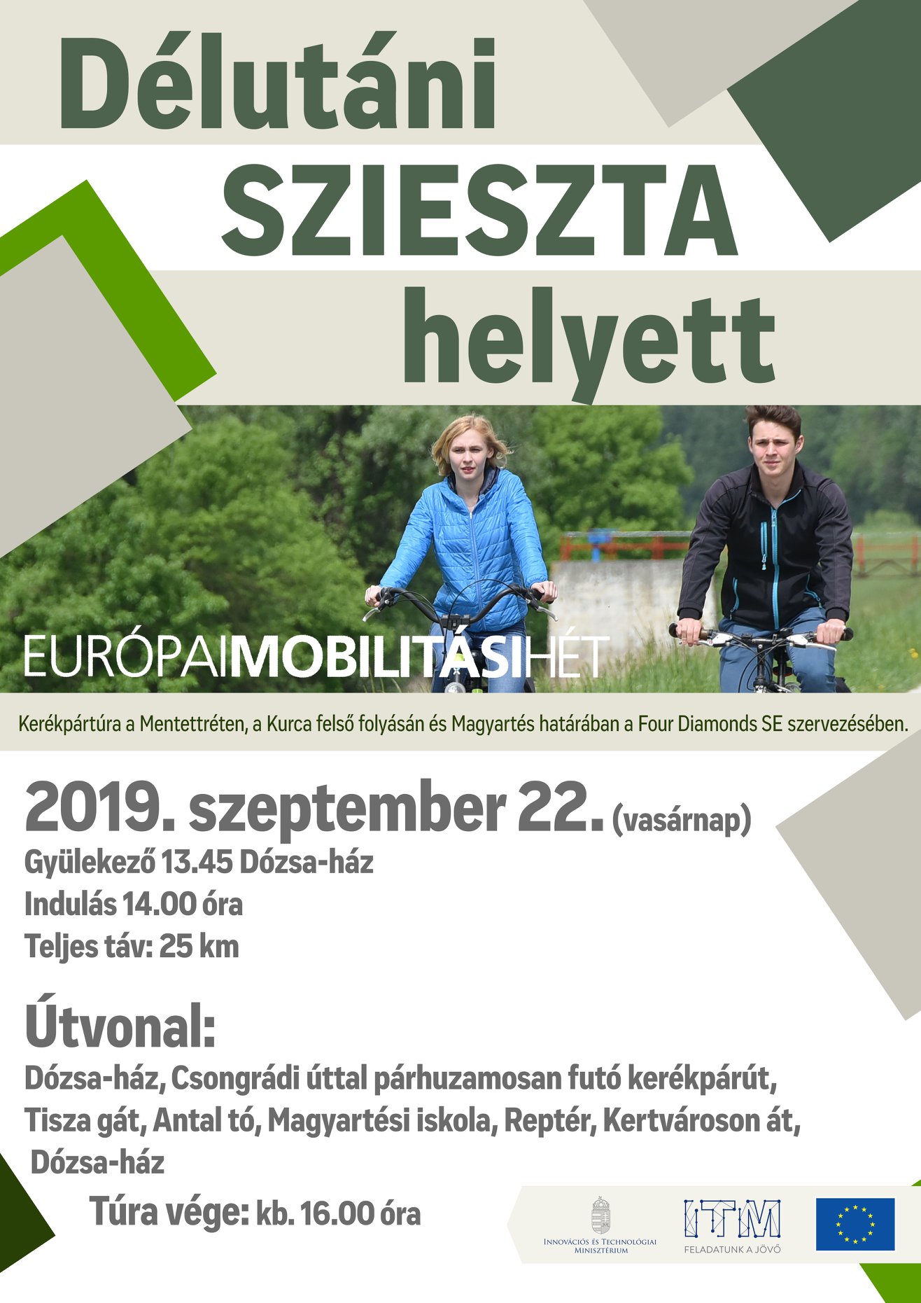 Idén szeptember 16. és 22. között tizennyolcadik alkalommal rendezik meg az Európai Mobilitási Hetet, amelynek célja, a környezetbarát és fenntartható városi közlekedés népszerűsítése. Európa legnagyobb közlekedési-környezetvédelmi kampánya évről évre népszerűbb Magyarországon, 2018-ban is több mint 260 település vett részt a programokban, amivel Magyarország – közel ötven ország versenyében- a harmadik helyen végzett.