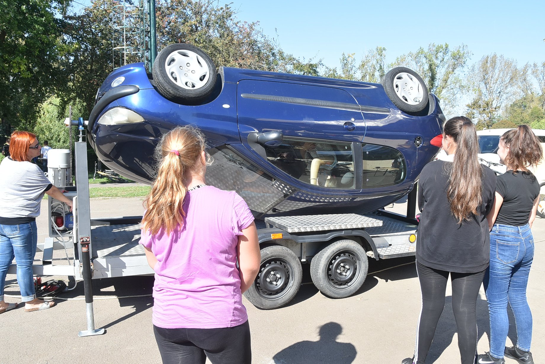 A résztvevő csapatok tagja kipróbálhatták azt a szimulátort, amelyben éppen fejetetejére fordul egy autó. Kipróbálhatták és megtapasztalhatták, hogy mennyire tart a biztonságiöv és milyen érzés felborulni. Reméljük, senki sem tapasztalja meg ezt az életben.