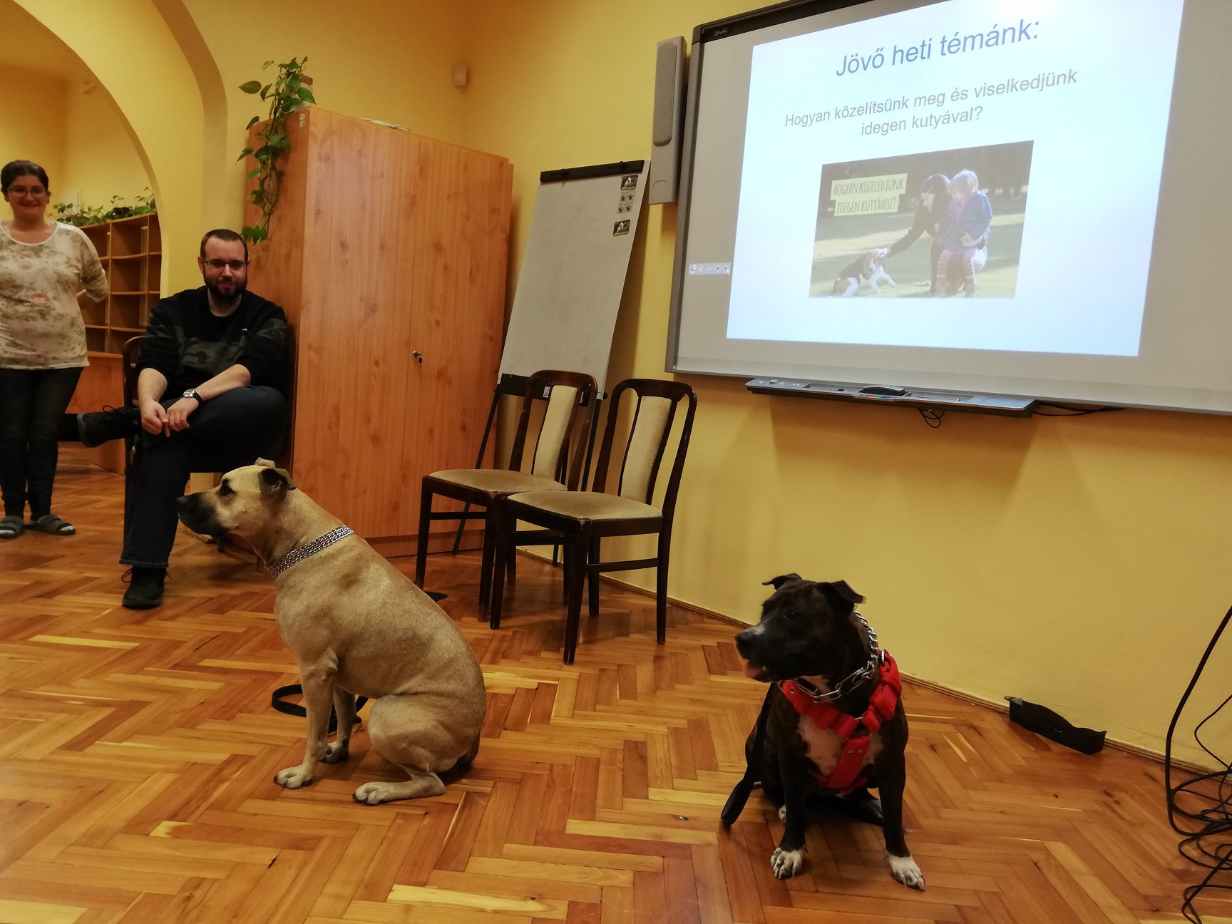 Minden pénteken a Gyermekkönyvtárban délután 5 órai kezdettel kutyás klubon vehetnek részt a kutyabarátok. Sok hasznos információ hangzik el a kutyatartás fortélyairól, és minden alkalommal élő kutyákkal is találkozhatnak a résztvevők. Tegnap (szeptember 20) két közepes termetű kutya várta az érdeklődőket. Dacára annak, hogy egykor harci kutyák voltak, a hozzáértő képzés, a sok foglalkozás és szeretet kezes bárányokká tette őket: minden résztvevővel lepacsiztak. A szervezők mindenkit szeretettel várnak. A belépés díjtalan.