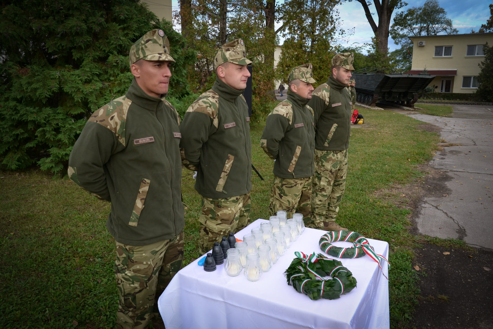 A rendezvény befejező részében Bartók Gábor alezredes és Bernátsky László törzszászlós az ezred nevében, Baráth Mária és Ráfael Péterné honvédelmi alkalmazottak a HODOSZ nevében koszorúkat, a logisztikai század katonái pedig mécseseket helyeztek el a laktanya névadója, Damjanich János szobra előtt.