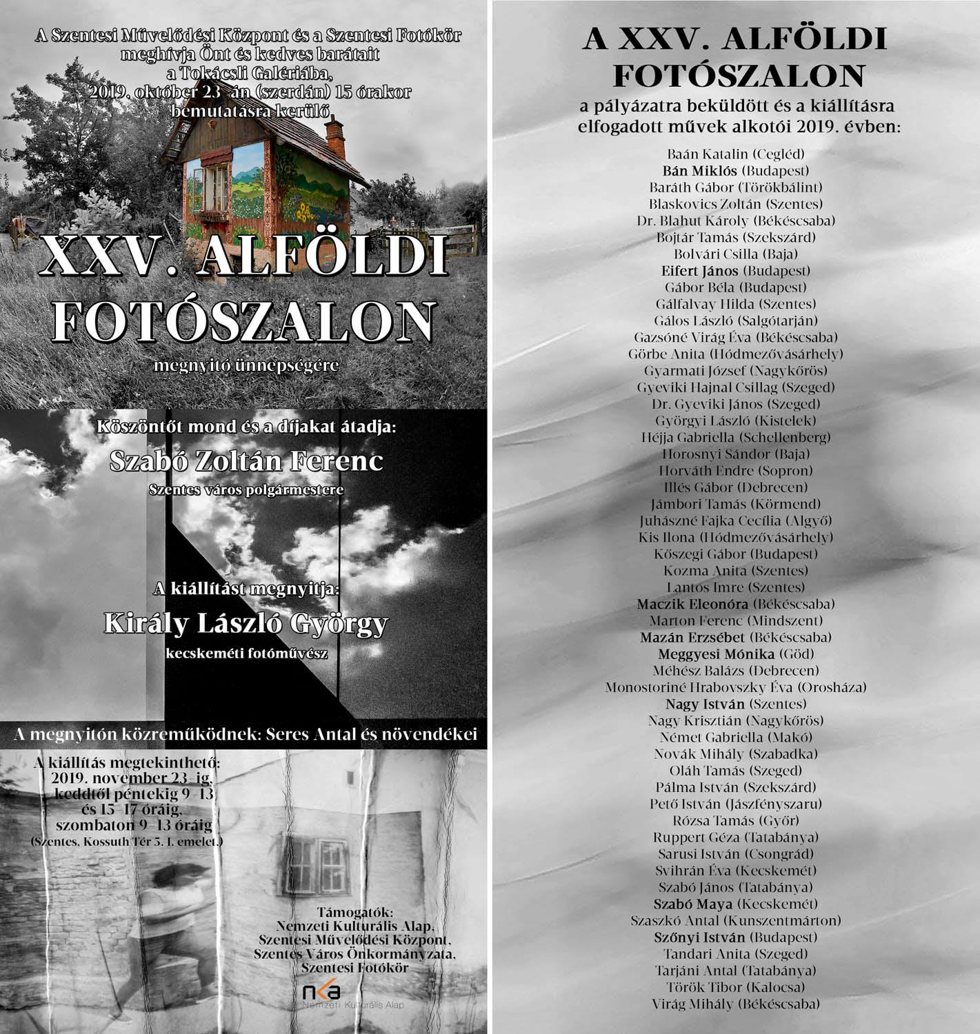2019. október 23-án (szerdán) 15 órakor bemutatásra kerülő XXV. ALFÖLDI FOTÓSZALON megnyitó ünnepségére.