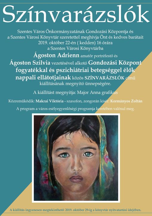 a Szentes Városi Könyvtár szeretettel meghívja Önt és kedves barátait 2019. október 22-én ( kedden) 16 órára a Szentes Városi Könyvtárba Ágoston Adrienn amatőr portréfestő és