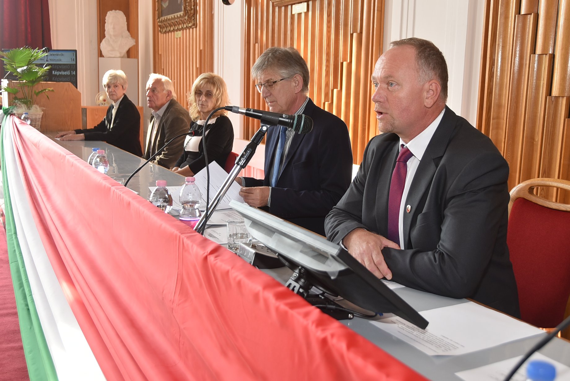 Velük együtt teszi le esküjét Agócs Lászlóné is, mert külföldi útja miatt nem tudott megjelenni az alakulóülésen.