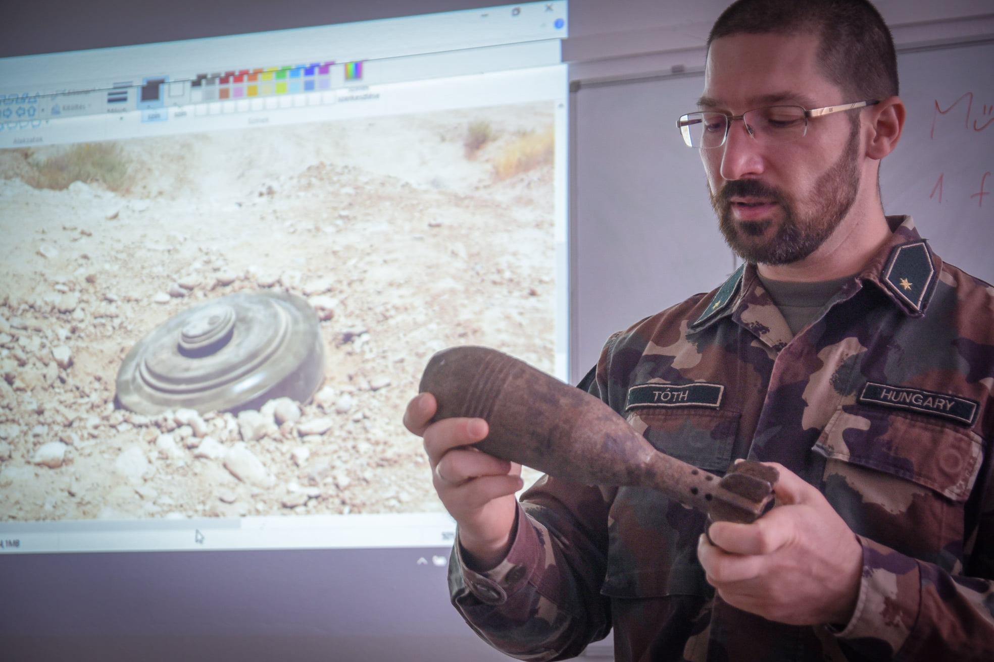 Az egyhetes kiképzés elméleti foglalkozásokkal kezdődött, ahol a katonák az utak és menetvonalak műszaki felderítésének alapvető ismereteit sajátították el, továbbá az egyéni és kollektív vegyivédelmi eszközökkel, valamint a különböző atom, biológiai, vegyi hatások kimutatására alkalmas eszközök kezelésével ismerkedtek meg. A hét második felében az aknák típusairól megtartott előadás után a hagyományos és szórt aknamezők felderítési, továbbá a talált aknák megjelölésének módjait gyakorolták be. A felderítő tevékenység kis létszámú csoportokban zajlik, ezért elengedhetetlen, hogy a katonák járatosak legyenek elsősegélynyújtásban is. Ennek érdekében ön- és kölcsönös segélynyújtás foglalkozáson is részt vettek, ahol például egy robbanás okozta sérülés ellátására vagy egy aknamezőn sérült személy kimentésére kaptak szakmai iránymutatást. A felderítő rajok a tanfolyam végén az addig tanult ismereteikről gyakorlatban adtak számot egy járőrfeladat végrehajtása során.