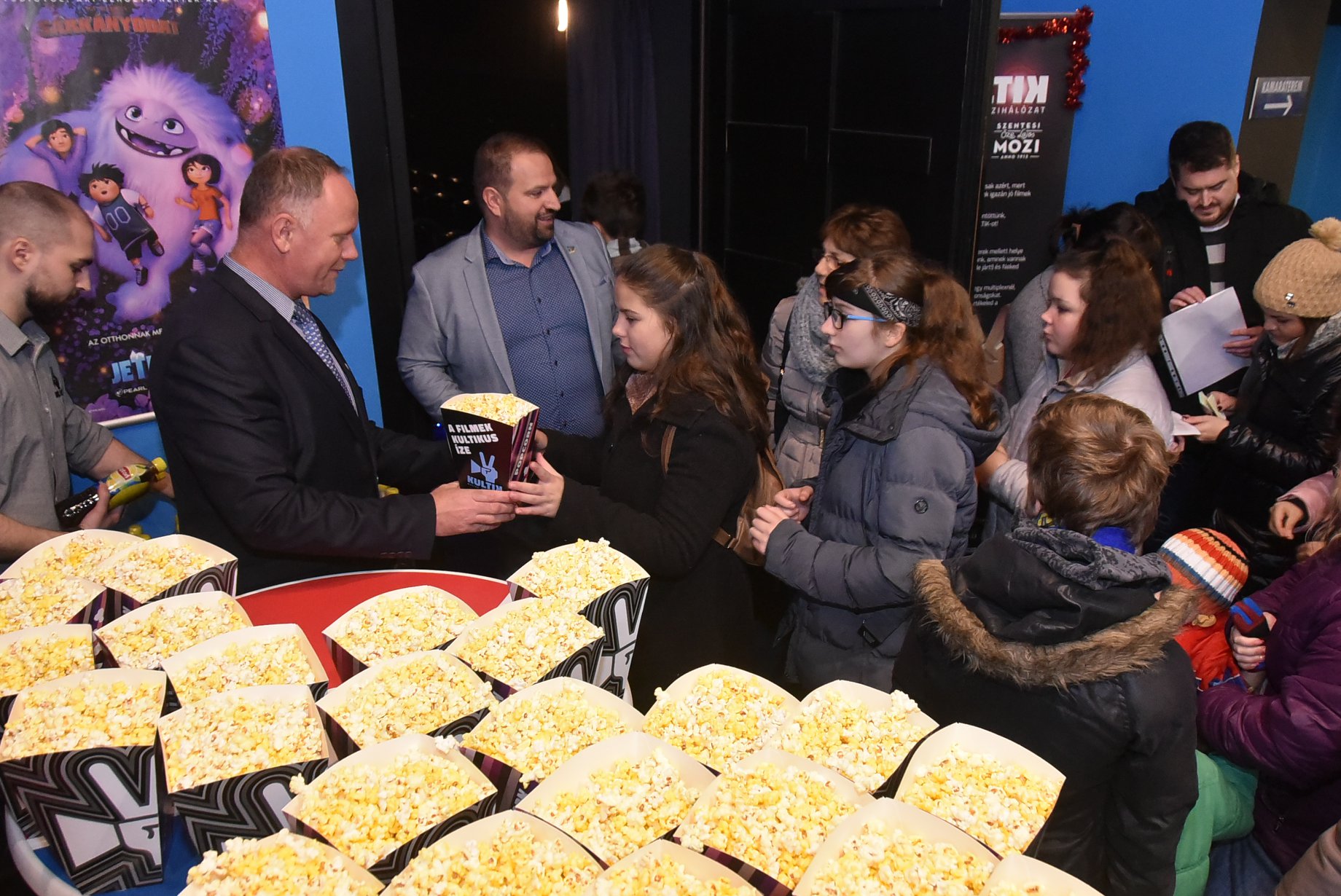 Testvérek egymás kezét fogva kissé megilletődve vették át az elmaradhatatlan moziételt a pattogatott kukoricát és hozzá az üdítőt. Szabó Zoltán Ferenc polgármester megköszönte Szabó Krisztiánnak a mozit üzemeltető cég vezetőjének ezt a lehetőséget.