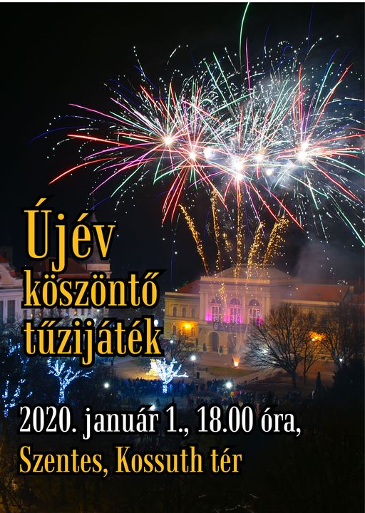 Szentes Város Önkormányzata és a Szentesi Művelődési Központ szeretettel vár mindenkit 2020. január 1-jén 18 órakor a Kossuth térre, hogy együtt köszöntsük az új évet a már hagyományos újévi tűzijátékkal.