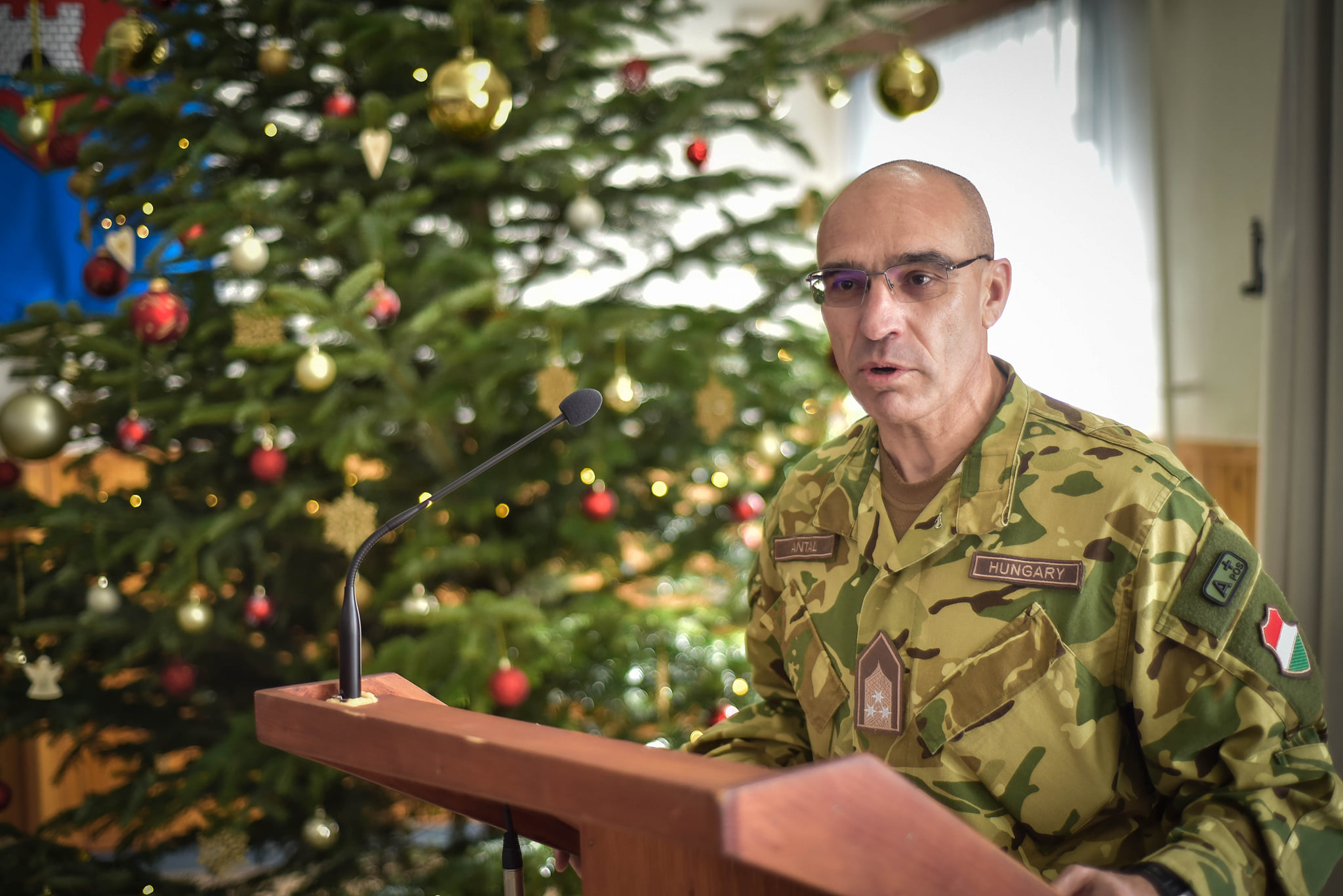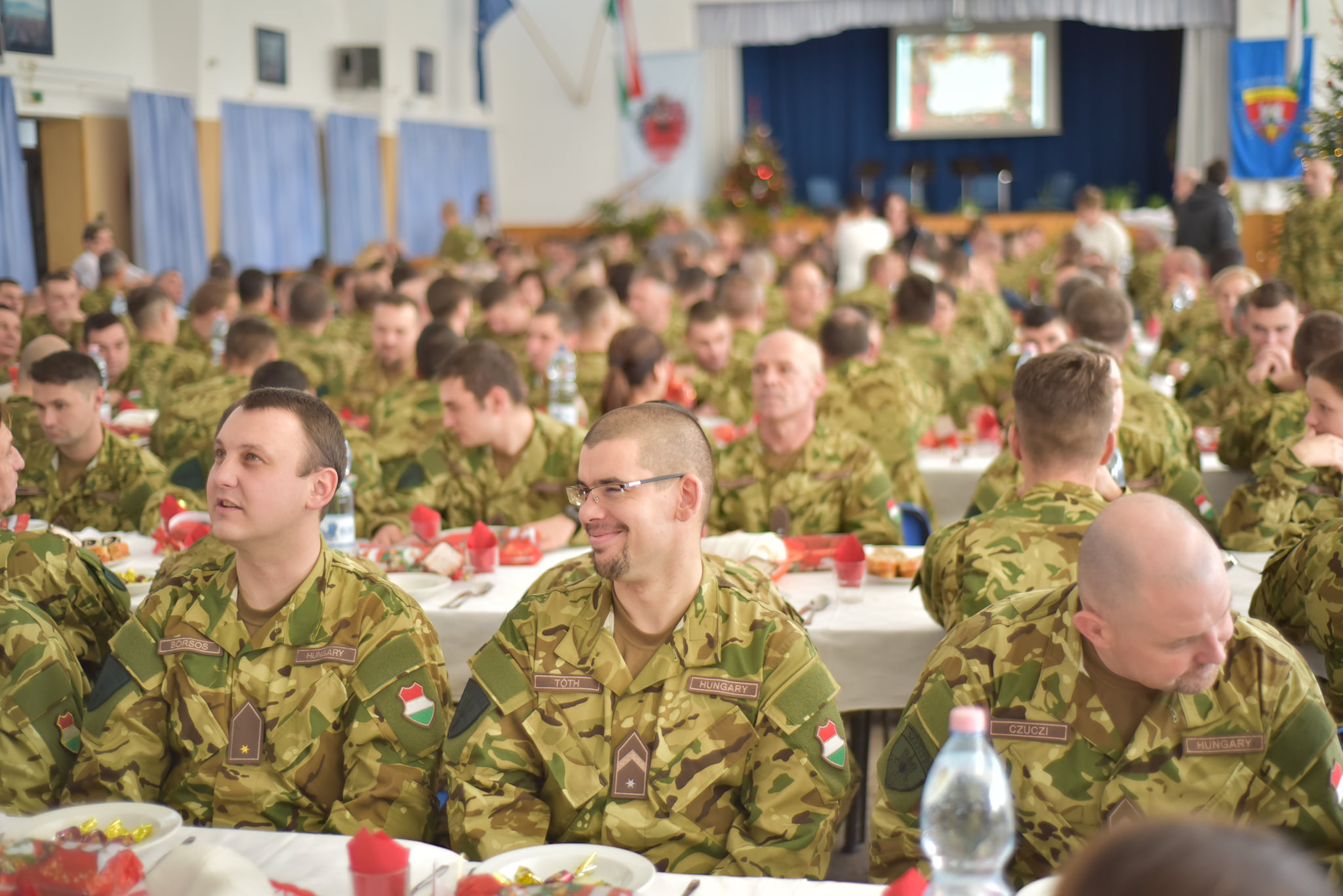 Antal László ezredes, alakulatparancsnok üdvözölte a jelen lévőket, majd megköszönte az alakulatnál dolgozók 2019. évben végzett munkáját, és kérte, hogy mindenki kapcsolódjon ki, lassuljon le, hogy a következő évet kipihenten és lendületesen kezdhesse meg. Ezt követően Fehér Csaba református tábori lelkész ünnepi gondolatait osztotta meg az állománnyal, melynek végén mindenkinek áldott kegyeletteljes ünnepeket kívánt. A folytatásban az év utolsó hónapjában kerek születésnapjukat ünneplőket köszöntötte az ezredparancsnok, majd az MH 5. Bocskai István Lövészdandár Hódmezővásárhelyi Katonazenekar szaxofonos quartettjének ünnepi műsora következett. A rendezvény vidám beszélgetések közepette elfogyasztott ünnepi ebéddel zárult.