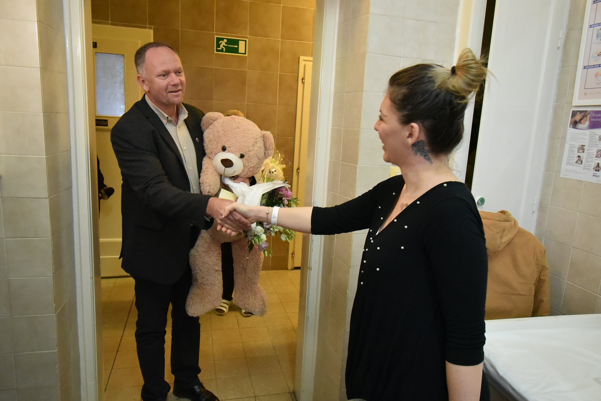 Az újszülötteket a kórház részéről Dr. Szilágyiné Kádár Irén ápolási igazgató köszöntötte.
