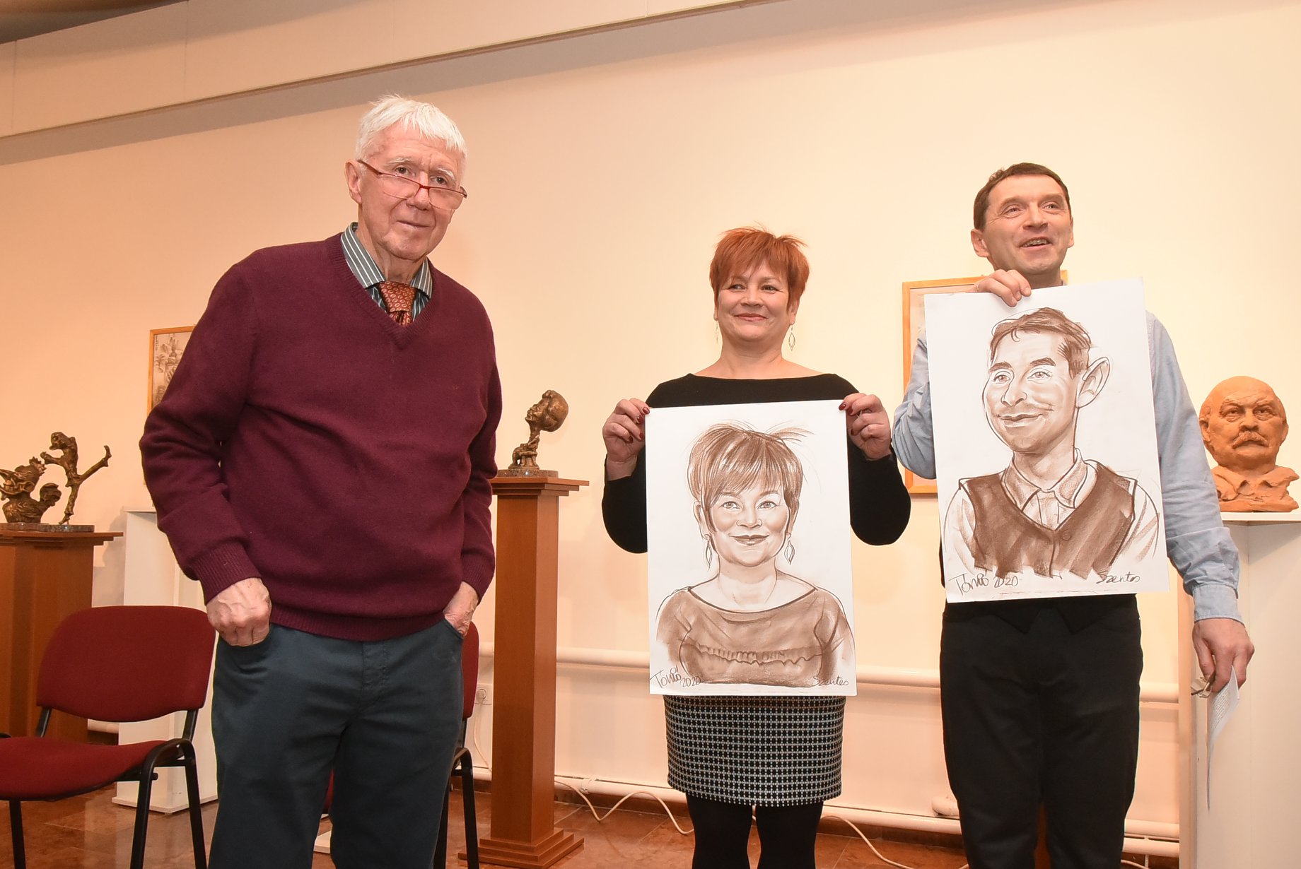 Vajon hol találkozhat egy teremben Puskás Öcsi XVI. Benedekkel? Az egy négyzetméterre eső híres emberek száma ilyen magas talán még sosem volt Szentesen, de a Tokácsli Galériában biztosan nem. Nem csoda, két nemzetközi szinten is jegyzett karikatúra művész, Csíky László szobrász, valamint Tónió grafikus Életutak című, immár sokadik közös kiállításán egy igazi panteonját emelték a világ nagyjainak.Írásunk a Szentesi Élet 9. oldalán olvasható.