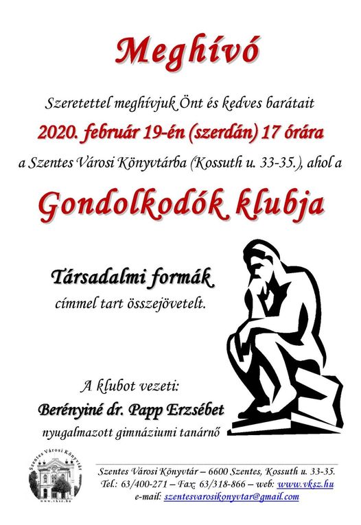 Kezdőlap Könyvtár Ma gondolkodók klubja a könyvtárban….