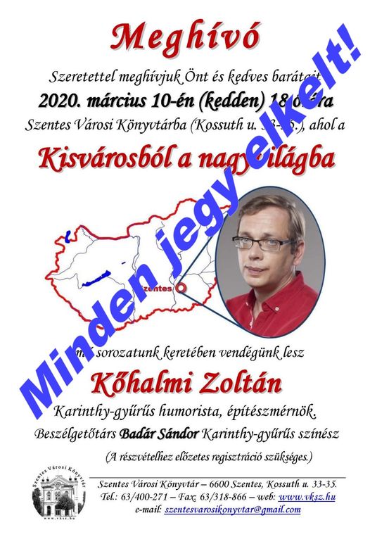 Kezdőlap Könyvtár Tisztelt Olvasóink! A rendezvényre minden jegy elkelt!…