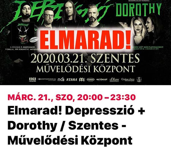 Kezdőlap Kultúra és szórakozás Hangversenyközpont #Depresszió #Dorothy #koncert #ZeneVilágZeneGraffiti #elmarad #Szentes…