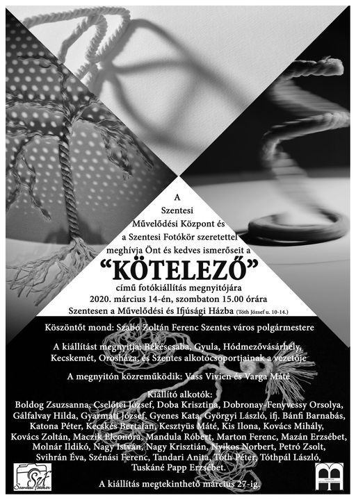 KÖTELEZŐ címmel fotókiállítás nyílik 2020. március 14-én (szombaton) 15 órakor.