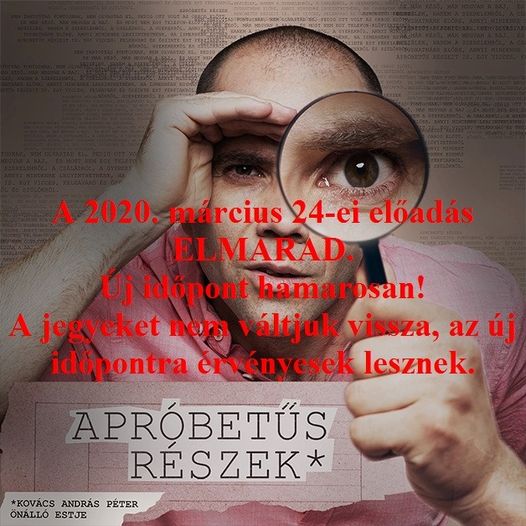 A Szentesi Művelődési Központ és a Dumaszínház közös szervezésében, a 2020. március 24-ére megrendezett Kovács András Péter önálló estje ELMARAD!