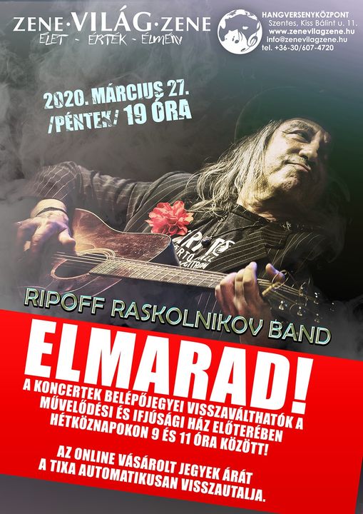 #RipoffRaskolnikovBand #koncert #Szentes #elmarad #jegyvisszaváltás #Hangversenyközpont #ZeneVilágZene
