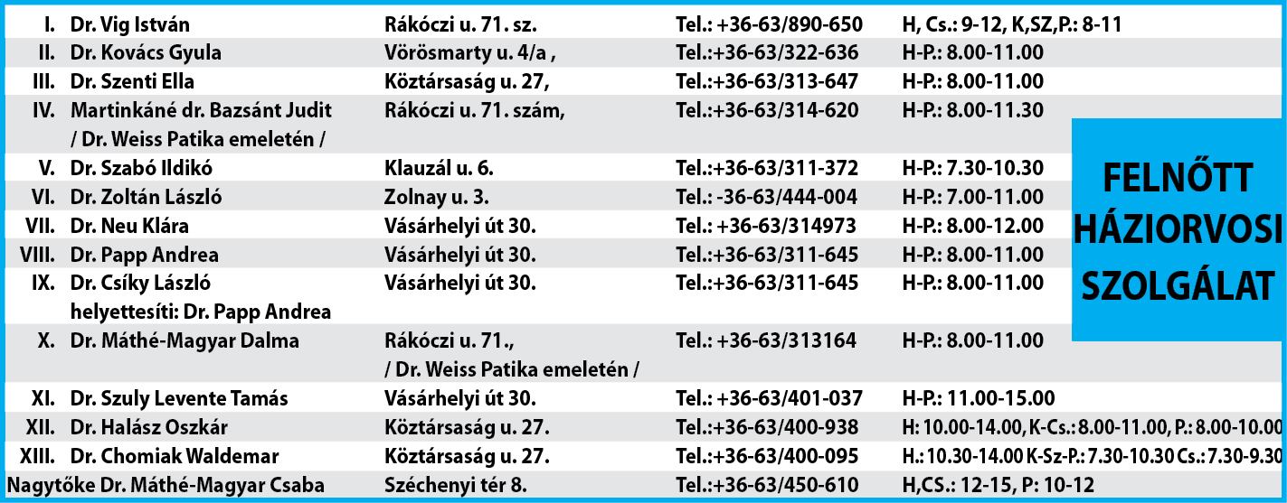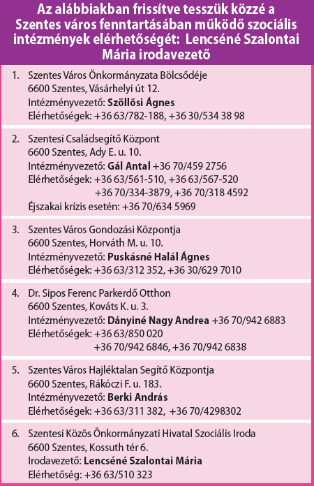 A szentesi háziorvosok, szociális intézmények és az önkormányzati képviselők elérhetőségei