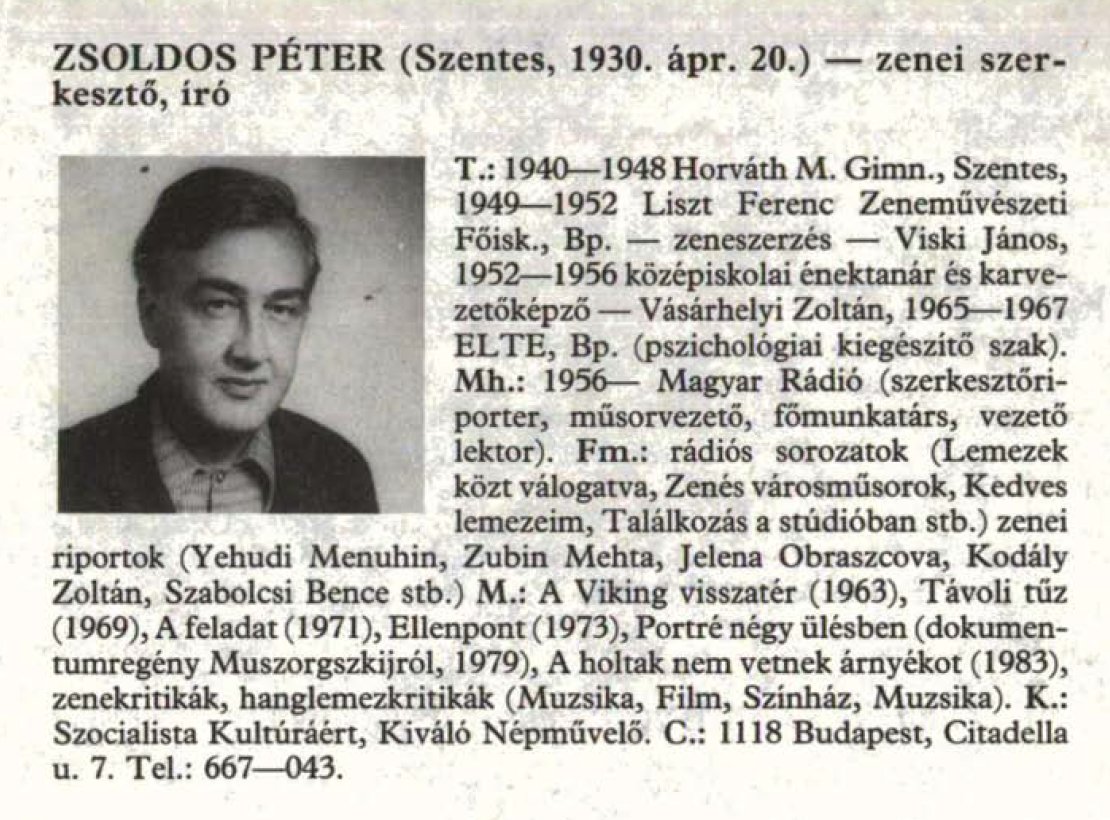 90 éve, 1930. április 20-án született Szentesen Zsoldos Péter (1930-1997) zenei szerkesztő, író, a Magyar Rádió főmunkatársa, a tudományos-fantasztikus irodalom egyik legjelentősebb magyar képviselője