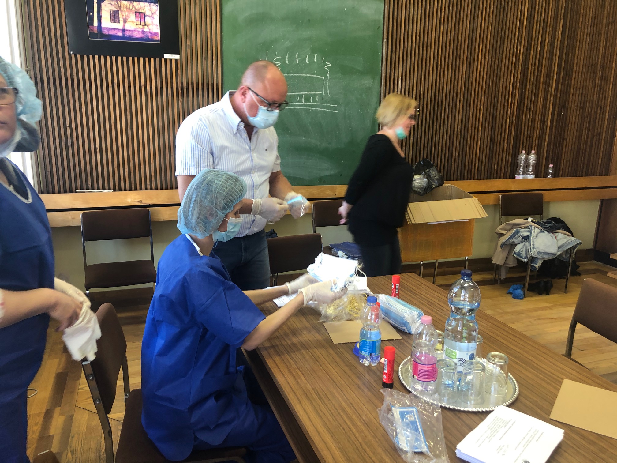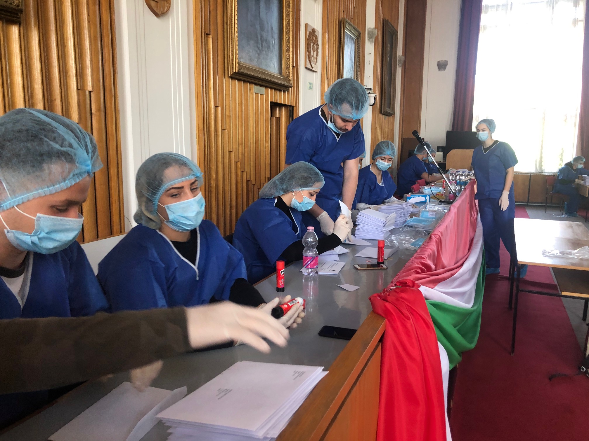 -Közel 40 fő segít a borítékokba becsomagolni a maszkokat, amelyeket megcímeztünk. Több, mint 6300 maszkot osztunk ki a 65 év feletti lakosság részére, mindenki számára egyet biztosít az önkormányzat – tudtuk meg Kiss Csabától. Az alpolgármester hozzátette, hogy ennél több maszkkal rendelkezik az önkormányzat, összesen 12 000 darab érkezett Szentesre, ezen felül egy 10 000 darabos szállítmány is úton van. Az önkéntes segítők között önkormányzati dolgozók, az intézmények munkatársai, illetve a hivatal díszteremében az Anonim Night csapata is csomagolta a szájkendőket. Az alpolgármester példaértékűnek nevezte a fiatalok önkéntes segítségnyújtását. Hozzátette, hogy a keddi napon már elkezdődik a kézbesítés a 65 év felettieknek, amit elsősorban a városellátó munkatársai végeznek, emellett önkéntesek és a körzettel rendelkező képviselők is jelezték részvételüket az akcióban. A védőfelszerelésekkel kapcsolatban elmondta, hogy hétfőn, Sőrés Zoltán egyéni vállalkozó felajánlásából kaptak 40 védőszettet, amelynek elemeit – a hajhálót és a lábzsákot – már használják az önkéntesek. A maszkok a bőr érintése nélkül kerülnek a borítékokba, úgy gondolom, hogy minden segítőnk tisztességgel betartja a szabályokat – hangsúlyozta. Emellett az önkormányzati intézményekről is gondoskodik a hivatal a védőfelszerelések beszerzésében. Kiss Csaba megerősítette, hogy folyamatban van fertőtlenítő folyadék beszerzése, az önkormányzat elküldte a rendelési igényét, és várják az érkezését.