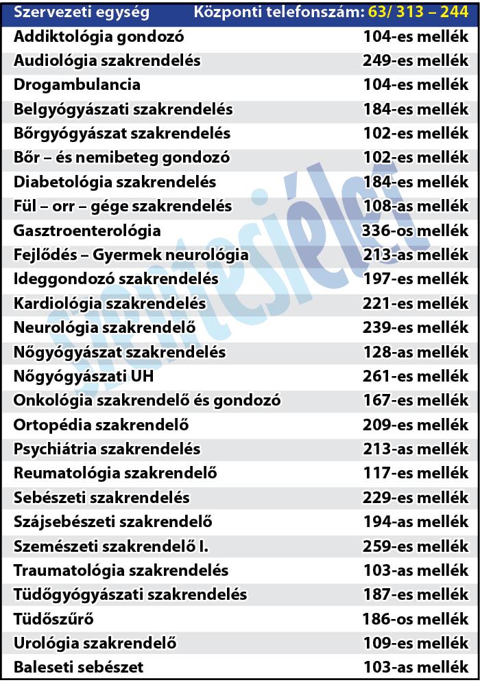 Az injekcióra berendelt betegeket várják a megadott kontrollidőpontban, receptfelírás kérhető a 06/63 500-844-es telefonszámon, amennyiben nincs panasz. Csak sürgős esetben keressék fel a gondozót személyesen, szájmaszkban.