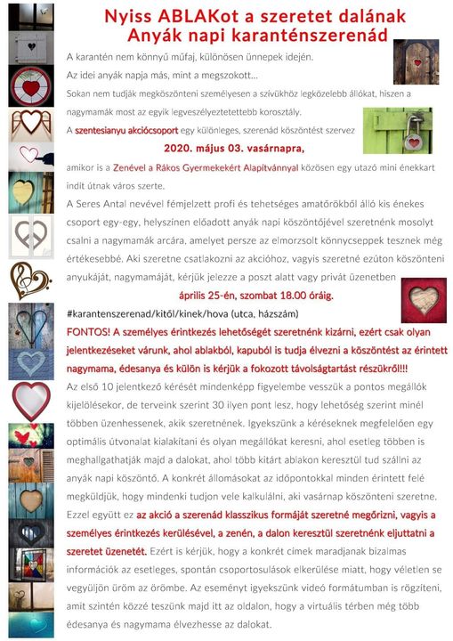 A Szentesianyu Facebook csoport tagjai anyák napi karanténszerenádot szerveznek a városban