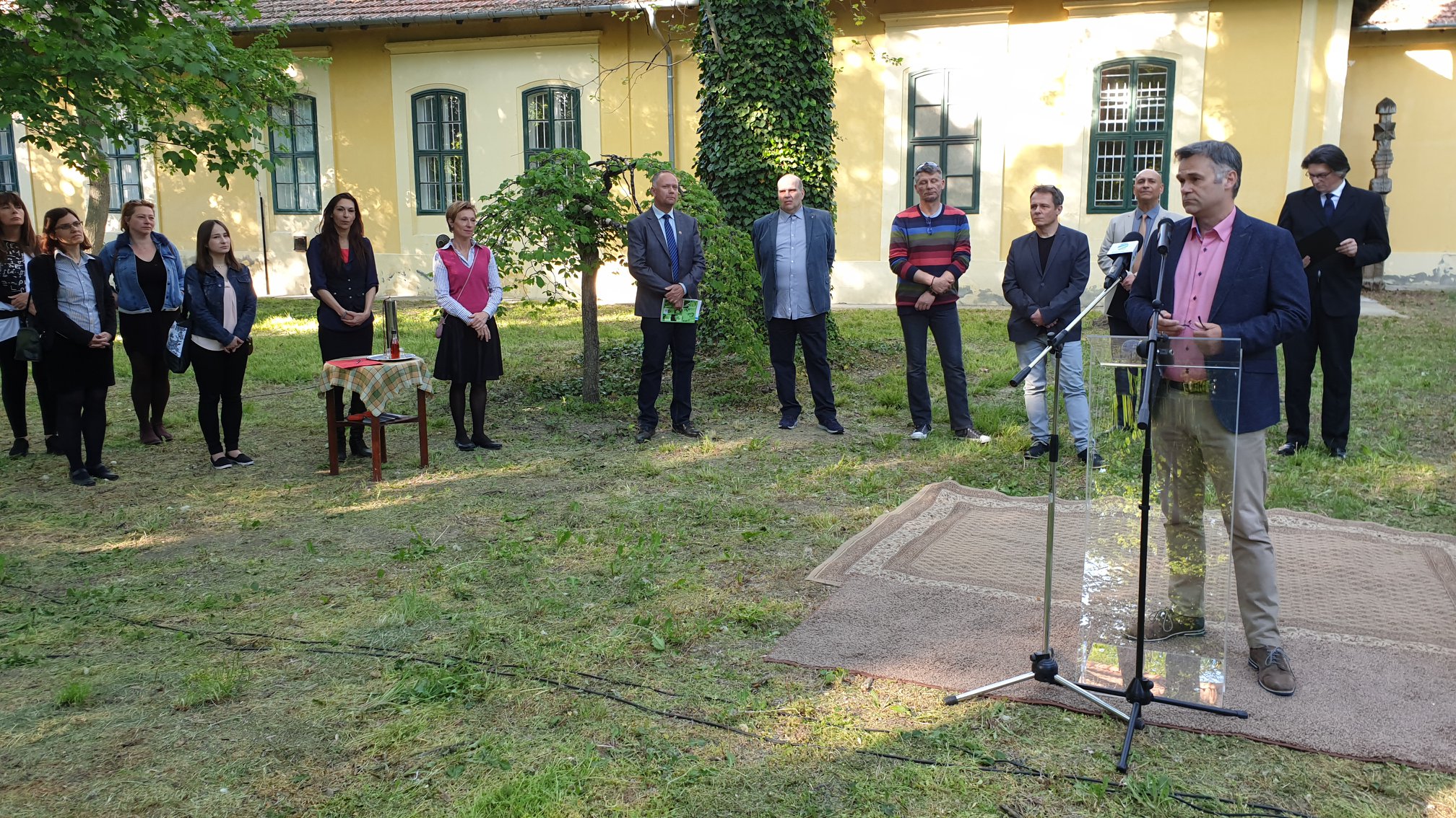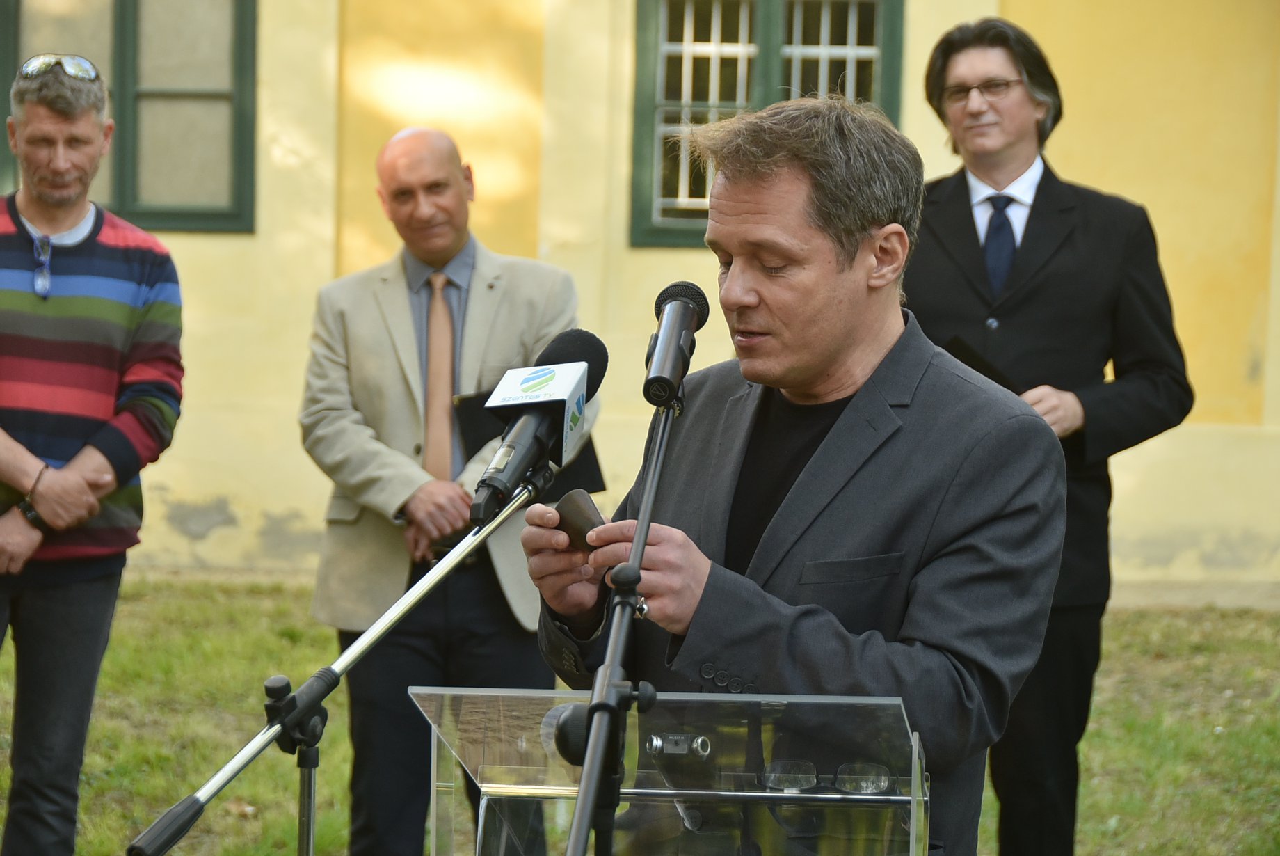 Farkas László Róbert elsőként Verebes István írását tolmácsolta, majd Szabó Zoltán Ferenc két anekdotát olvasott fel a Szentesi anekdoták kötetből. Dr. Gajdó Tamás az ŐZE LAJOS EMLÉKHÁZ színháztörténeti tanácsadójának gondolatai után és az alapkő, és egyben időkapszula elhelyezése előtt Őze Áron emlékezett vissza Édesapjára.