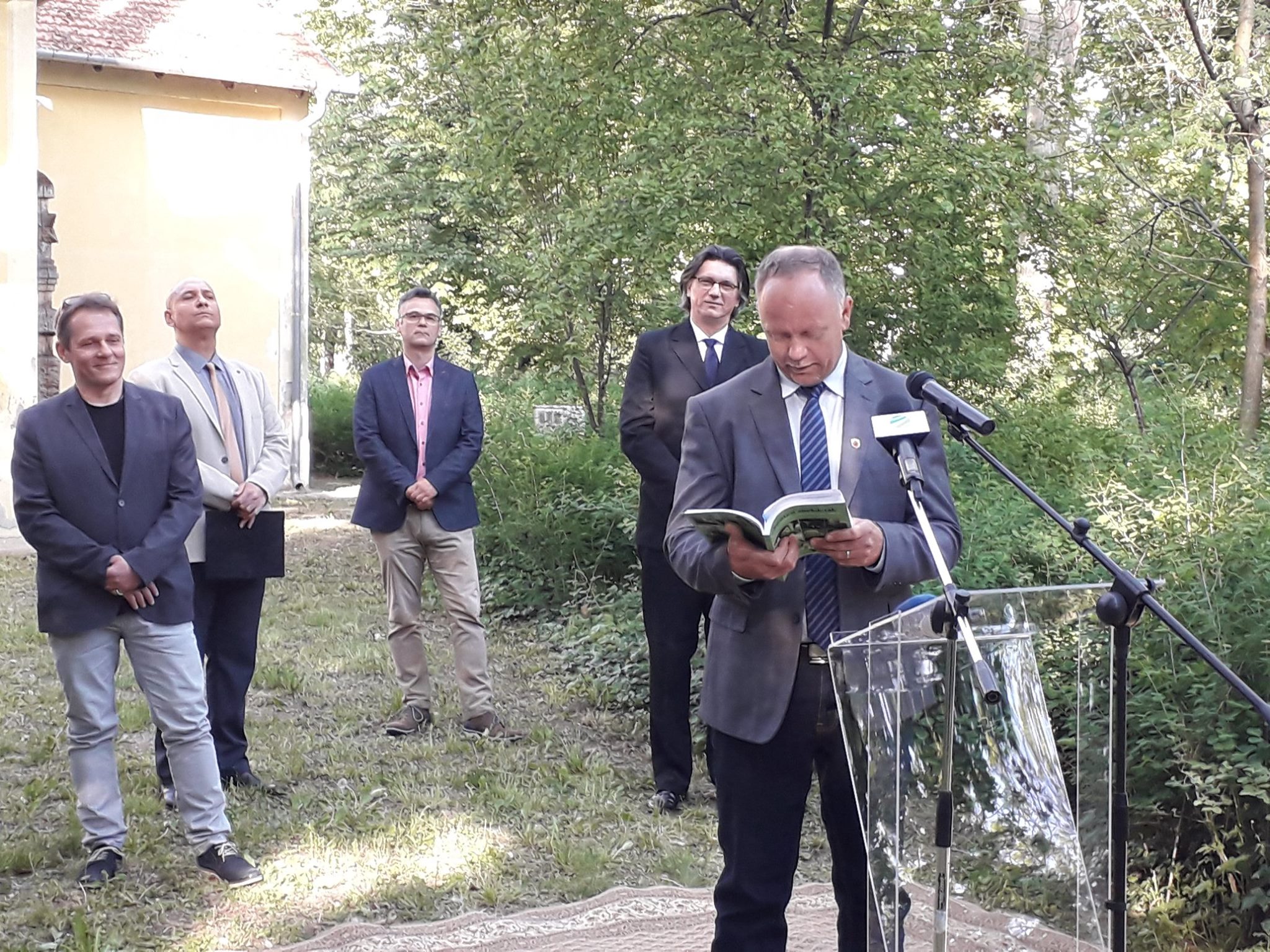 Őze Áron beszédében úgy fogalmazott, végre állandó emlékhelyet és kiállítást kap édesapja, ami csakis szülővárosában, Szentesen valósulhat meg. – Nehéz és fájdalmas megélnem, hogy a legifjabb generáció nem tudja, ki volt Őze Lajos. Csodás emlékeim vannak a szentesi nyarakról, amit bátyámmal, Gáborral töltöttünk apai nagymamánknál, az Árpád utca 56. szám alatt. Abban mindig lódítok, hogy szentesi vagyok, mert Budán születtem, de büszkén vallom magam szentesinek – osztotta meg személyes emlékeit. Őze Áron maga választotta ki az idézetet, amely az időkapszulába került, és amelyet aláírtak a projekt alkotói. A neves, Kossuth-díjas művész fiának elmondása szerint édesapjának egyik kultikus verse, Ady Endre Az ős Kaján egy részlete került az emléklapra. A kapszula mellett elhelyezett még az eredeti szentesi házból származó birkakolompot, valamint a mai kor lenyomataként, egy, a járványhelyzetre emlékeztető szájmaszkot. Az időkapszulát Szabó Zoltán Ferenc polgármesterrel együtt helyezték el a Csallány Gábor Kiállítóhely mellett. Majd az előre elkészített itallal, egy igazi keverttel locsolták meg, emlékezve a Megáll az idő című film híres mondatára, amely Őze Lajos szájából hangzott el, hogy ezt a kevertet még nem tudták elrontani.