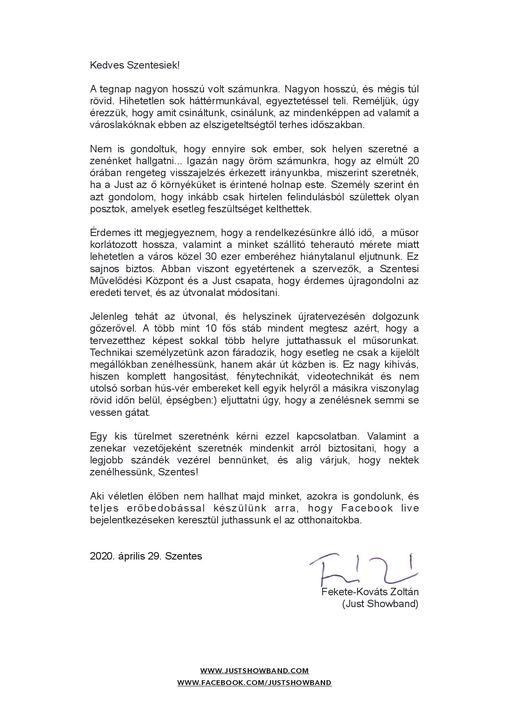 Kezdőlap Szentesi Élet A JUST SHOWBAND hivatalos közleménye…