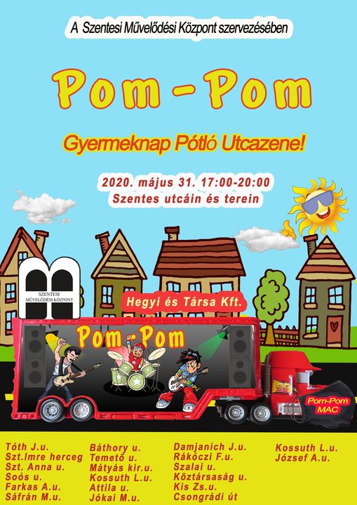 Május utolsó vasárnapja GYEREKNAP. Idén rendhagyó módon a Pom-Pom Együttes gyereknapi roadshow-val kedveskedik Nektek. Május 31-én 17-től 20 óráig az együttes saját dalokat játszva járja be a várost. Az útvonalat a napokban tesszük közzé.