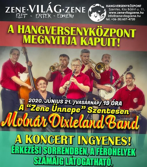 2020. június 21-én vasárnap 19 órai kezdettel a Molnár Dixieland Band koncertjével ünnepli Szentes a „Zene ünnepét”