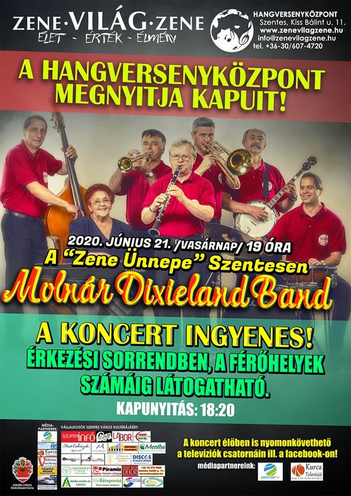 2020. június 21-én vasárnap 19 órai kezdettel a Molnár Dixieland Band koncertjével ünnepli Szentes a „Zene ünnepét”