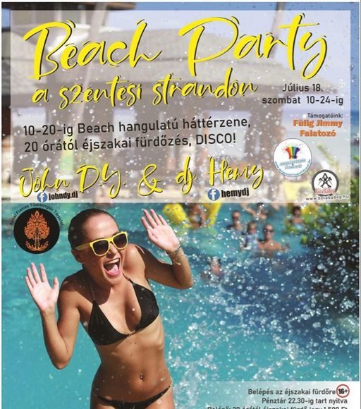 2020. július 18-án Beach Party vár mindenkit a szentesi strandon! 10-től 20 óráig beach hangulatú háttérzene, majd 20 órától éjszakai fürdő és diszkó!