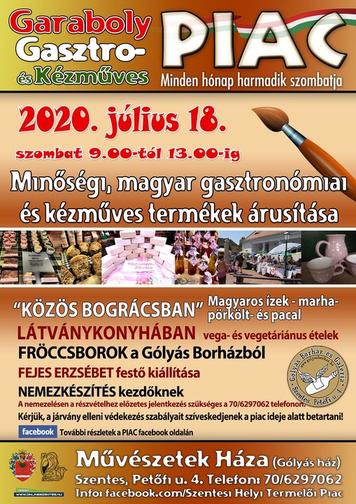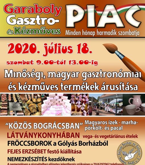 Minden hónap harmadik szombatján kerül megrendezésre a Garaboly Gasztro-Piac a Művészetek Házában, melyre várják az érdeklődőket!