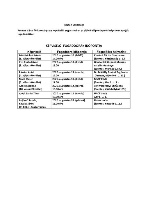 Kezdőlap Szentesi Élet Képviselői fogadóórák időpontjai…