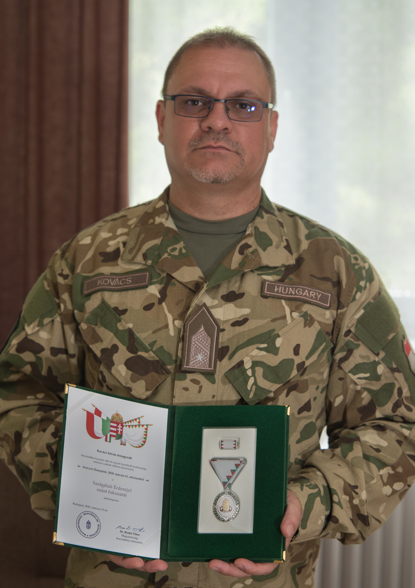 Magyarország honvédelmi minisztere a Szolgálati Érdemjel ezüst fokozatát adományozta Nemzeti Ünnepünk 2020. március 15-e alkalmából KOVÁCS ISTVÁN őrnagynak, a beosztásaiban huzamos időn át végzett kiemelkedő tevékenysége, valamint szakmai érdemei elismeréséül.