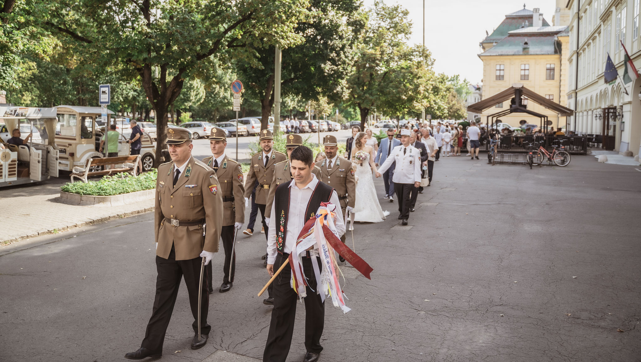 Kollégánk, Szűcs Jenő főtörzsőrmester hagyománytisztelő katonai esküvő keretében vette feleségül szíve választottját, Császár Karent.