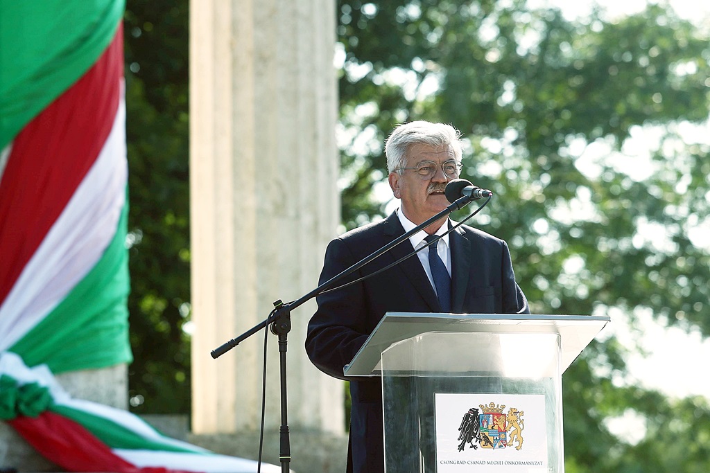Gémes László, a Csongrád-Csanád Megyei Közgyűlés elnöke köszöntő beszédében elmondta, hogy „Egy évezred távlatából szentéletű első királyunk, István életműve még mindig iránymutató, kapaszkodó, múlt, de egyben jövő is.”