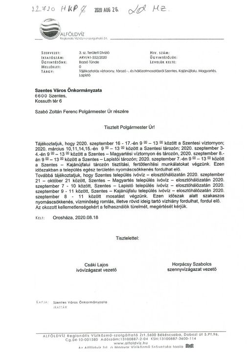 Kezdőlap Szentesi Élet Tájékoztatás víztorony, tározó- és hálózatmosatásról…