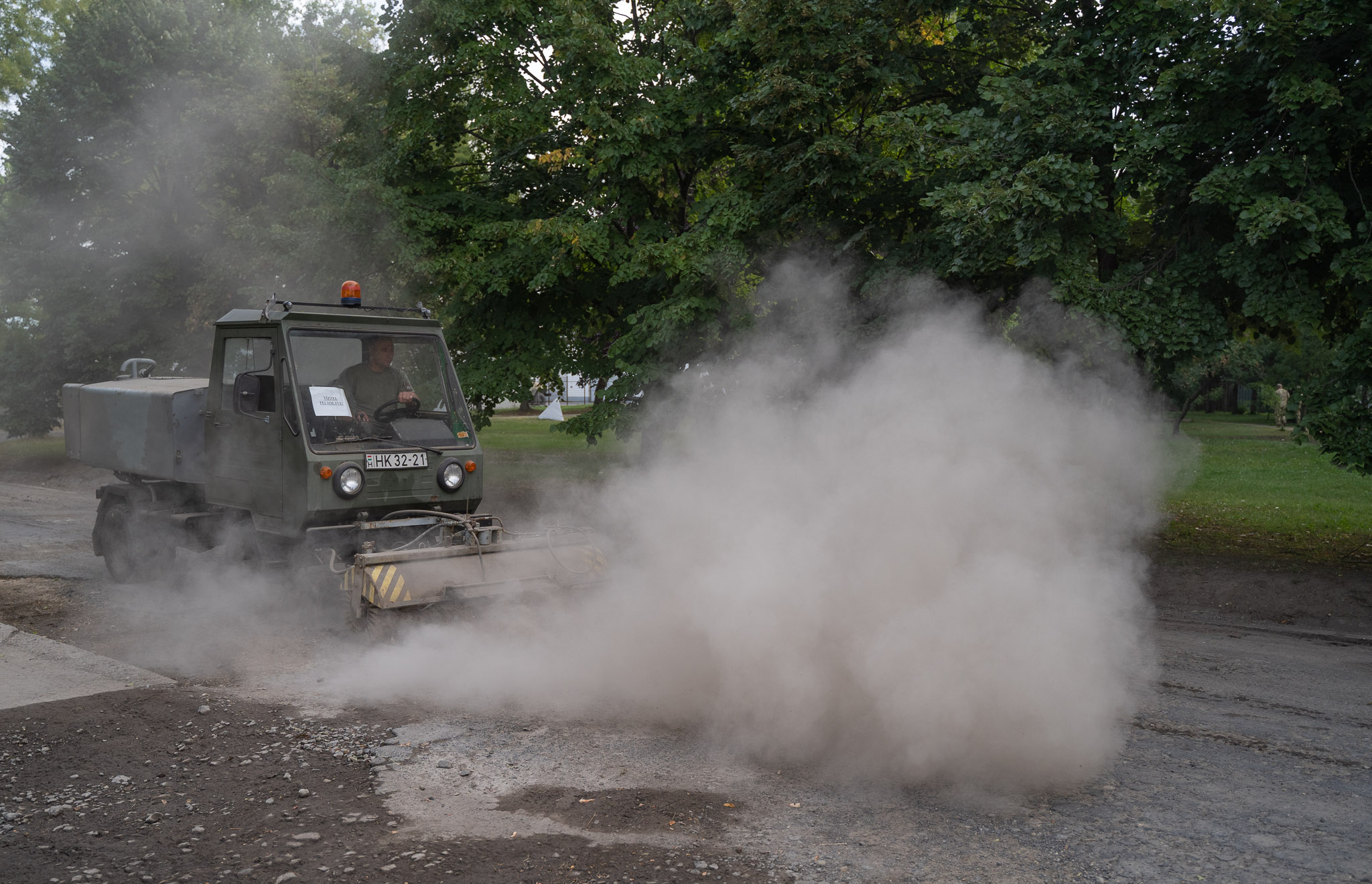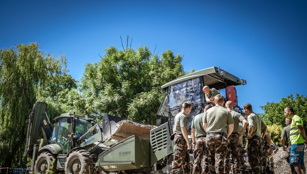 A Bomag Finisher aszfaltterítő gép gyakorlati felkészítése során a katonák az alakulatunk már elhasználódott útszakaszának felületét állították helyre, valamint a Hydra Joy 2 Solar önjáró cölöpverő berendezés kiképzése során a telephely építési folyamataiba folytak bele.
