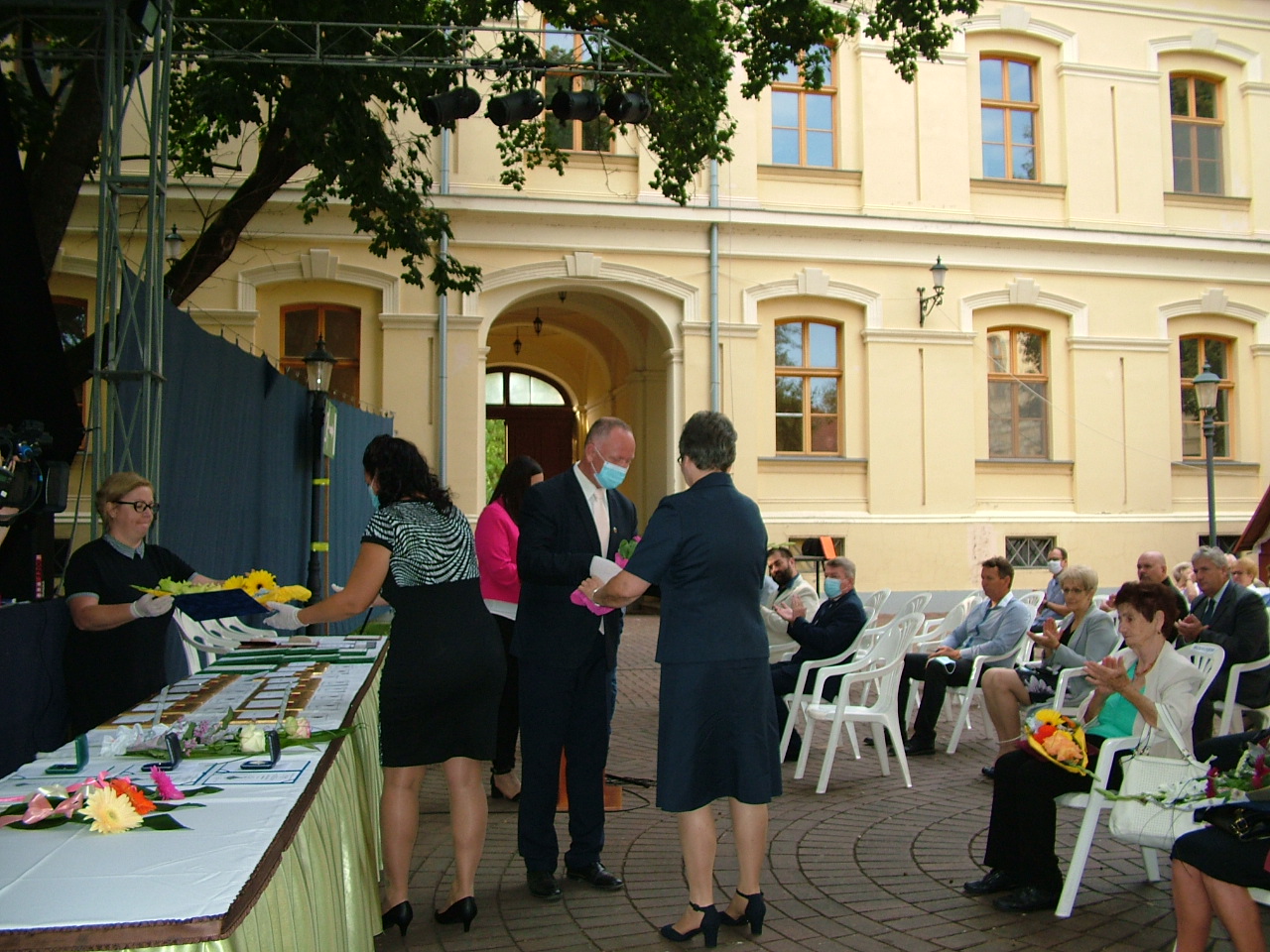 A járványhelyzet miatt 2020. szeptember 12-én pótolták a júniusban elmaradt pedagógus napi elismerések átadását Szentesen.