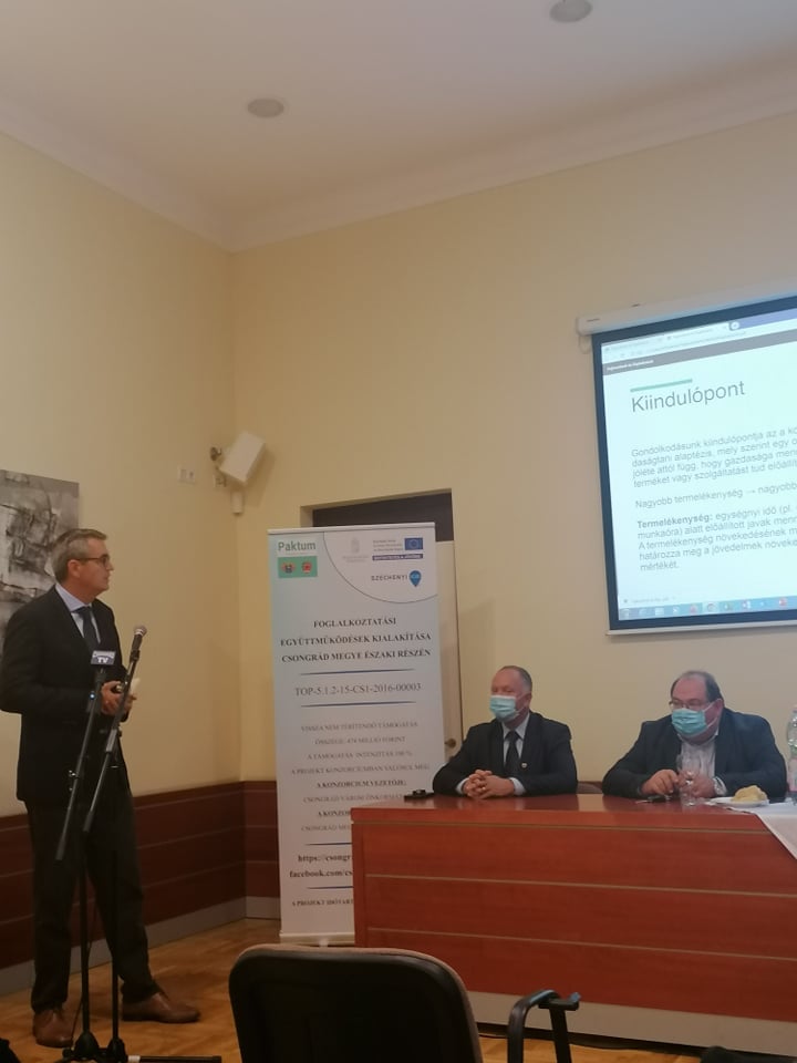 Szabó Zoltán Ferenc Szentes város polgármestere előadásában kiemelte a 2020-as év nehézségeit és ezek következményeit. A polgármester beszélt a Csongrád-Csanád Megyei turisztikai együttműködésről, amelynek alappillére az aktív turisztika. Ezen belül a kerékpáros és vízi turizmus alapvető elképzelése a Bökényi duzzasztó megújítása és a Kurca fejlesztéséről szóló törekvésekről szólnak. A kerékpárutak felújítása és bővítése első számú prioritás.